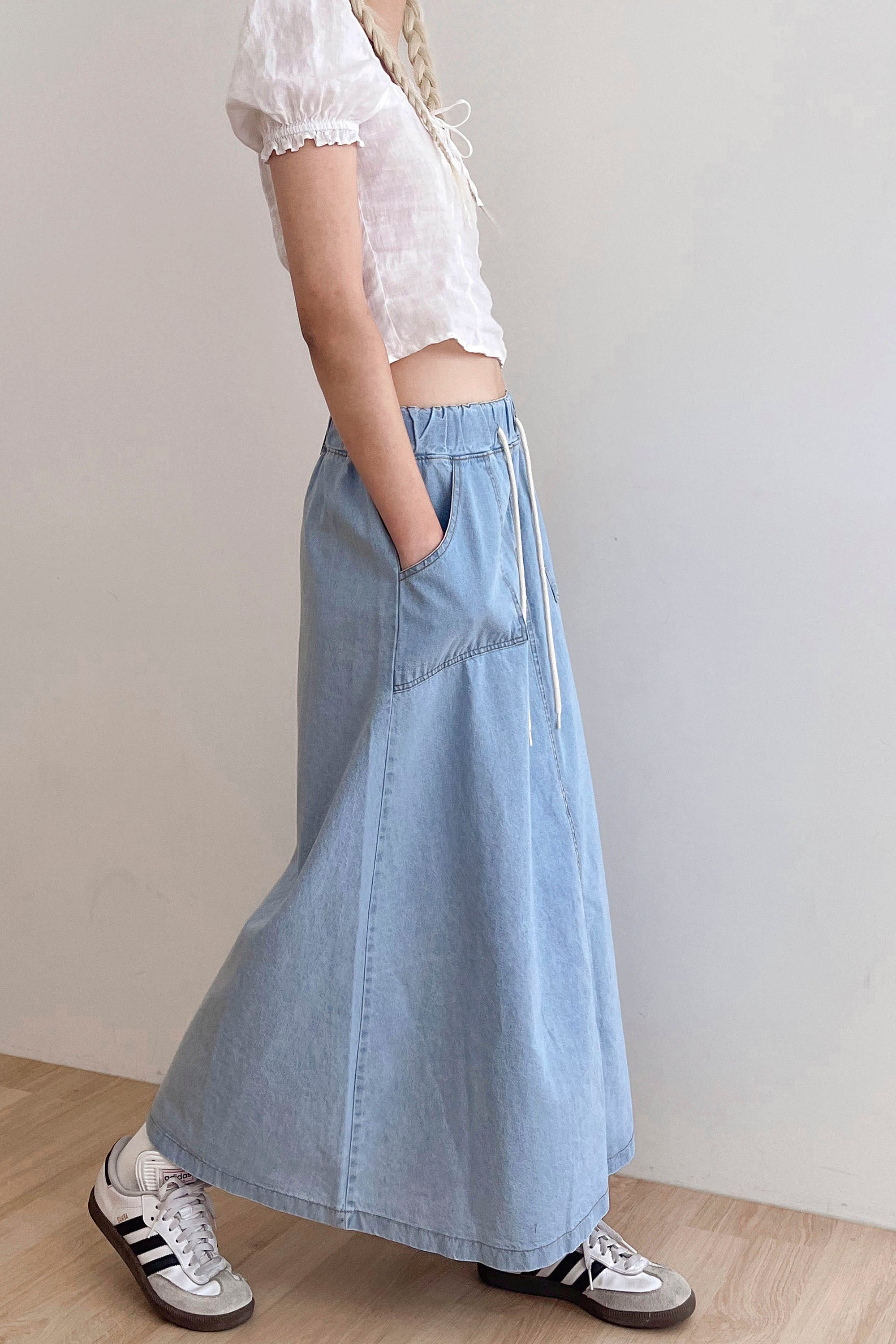 Layla Maxi Denim Skirt Pull on style Elastic banding on waist Drawstring tie Product Specification :100% Cotton Flat measurement : […]