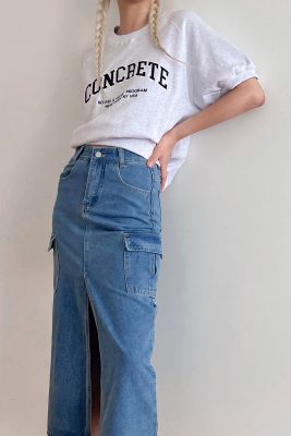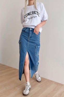 Olivia Cargo Denim Skirt Zip fly Front slit, side utility pockets Midi length Flat measurement (XS/S) Waist 33.5cm, Hip 44cm, Length 87cm Product […]